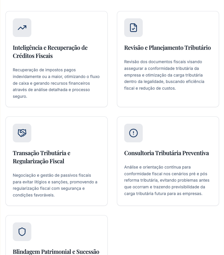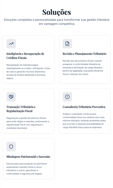 Consultoria especializada em garantir segurança e otimização fiscal, transformando desafios tributários em vantagens estratégicas para seu negócio.